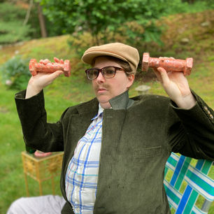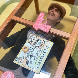 For the 2023 SPRING/BREAK Art Show, Cohen’s character, Brian, had an estate sale. There were over 100 ceramic household objects, each imbued with the essence of Brian. Visitors were invited to rummage through various oddities that had been born out of the interior spaces of the artist’s psyche. A range of Brian’s collections were on display. Brian, a single man over 50, turned to the comforts of processed meats and strategy games to cope with his lack of companionship. He loved Martha Stewart, Food and Wine magazine, men’s butts and cooking, but never had anyone to share his life with. Despite truly believing that love exists, he remained frustrated by his loneliness. The estate sale boasted many unique items: a collection of heart-shaped-rocks that Brian found on solo hikes, a grouping of sporks, games, an “ass” ash tray, plate ware, tea sets that had a striking resemblance to Brian and his deceased German Shepherd dog and a ceramic glock pistol that looked like ground beef. The artist saw parallels in her own desires and flaws and worried about the sadness that this imaginary man had felt.